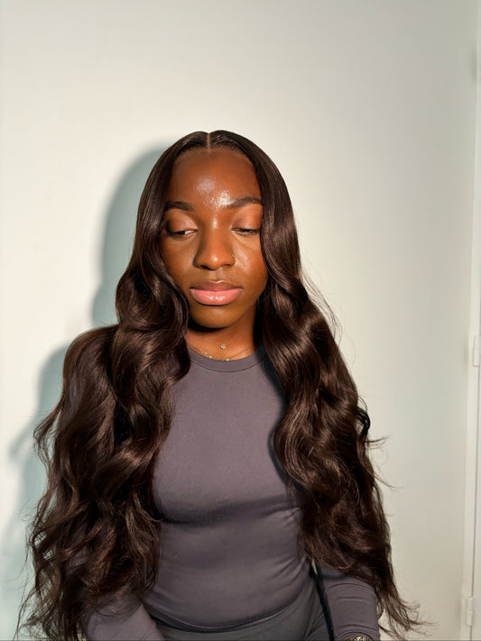 Kayla-perruque synthétique Swiss lace raie sur le côté
